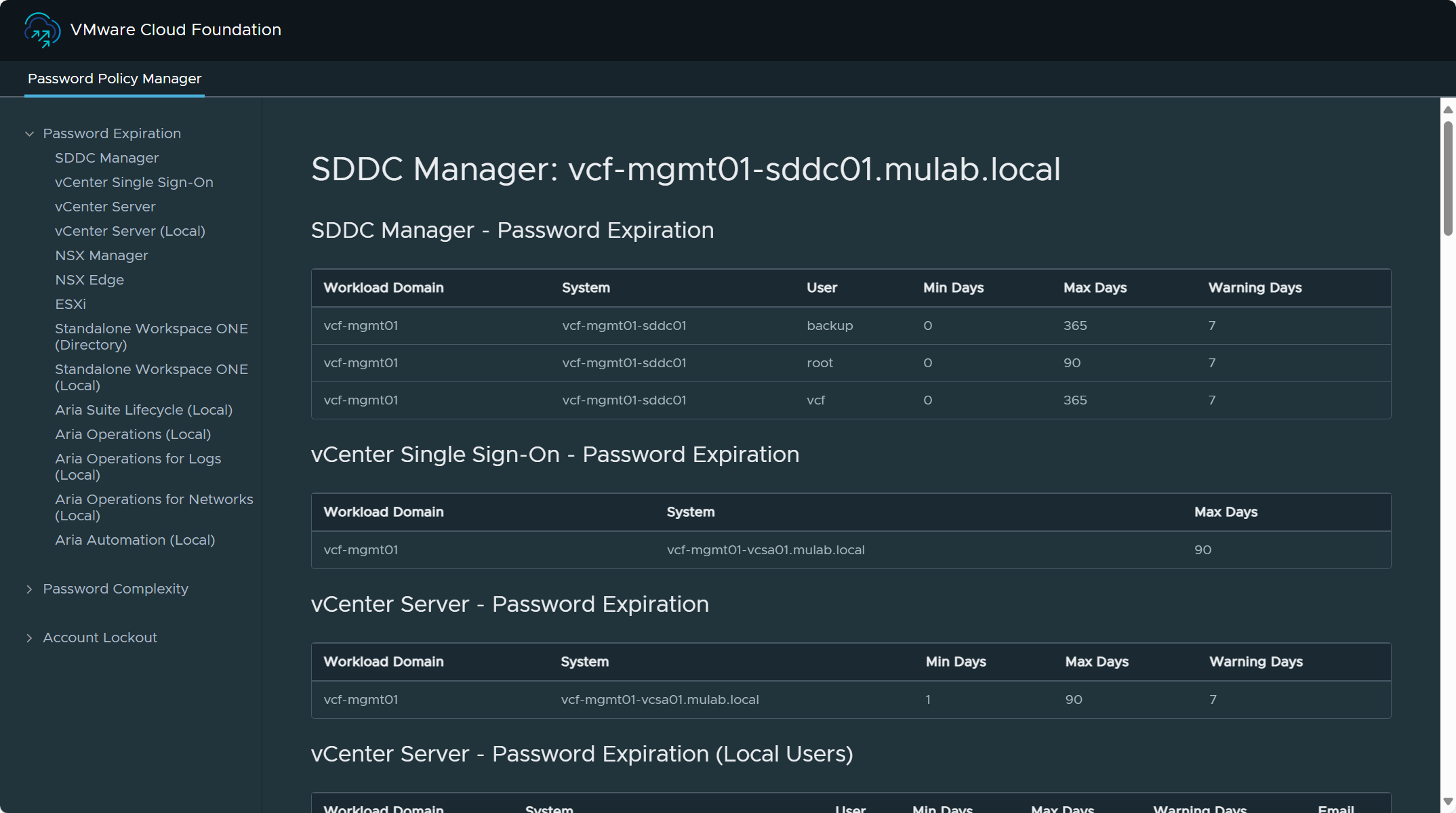- Configuring Password Expiration Policies in VMware Cloud Foundation