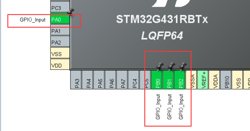 配置引脚 PA0、PB0~2 输入input – 4KEY