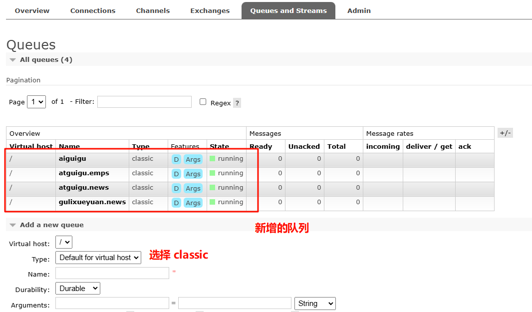 Queue queue = new Queue("hello-java-queue", true, false, false);