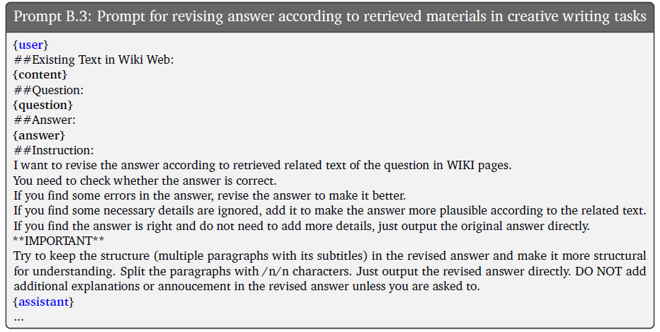 - Revise: 使用检索结果,对前面的所有段落进行修订