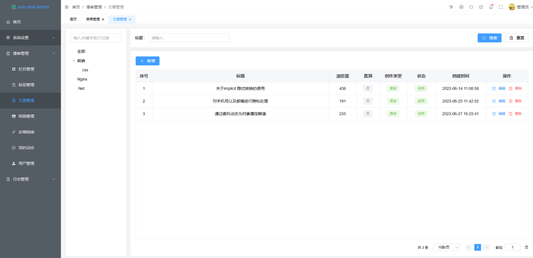Easy.Admin是一个基于.NET8+Vue3+TypeScript开发的权限管理&个人博客系统,分为普通版本和SSR(服务端渲染,支持SEO),服务端渲染框架基于vite-plugin-ssr实现,并且支持多种数据库。
