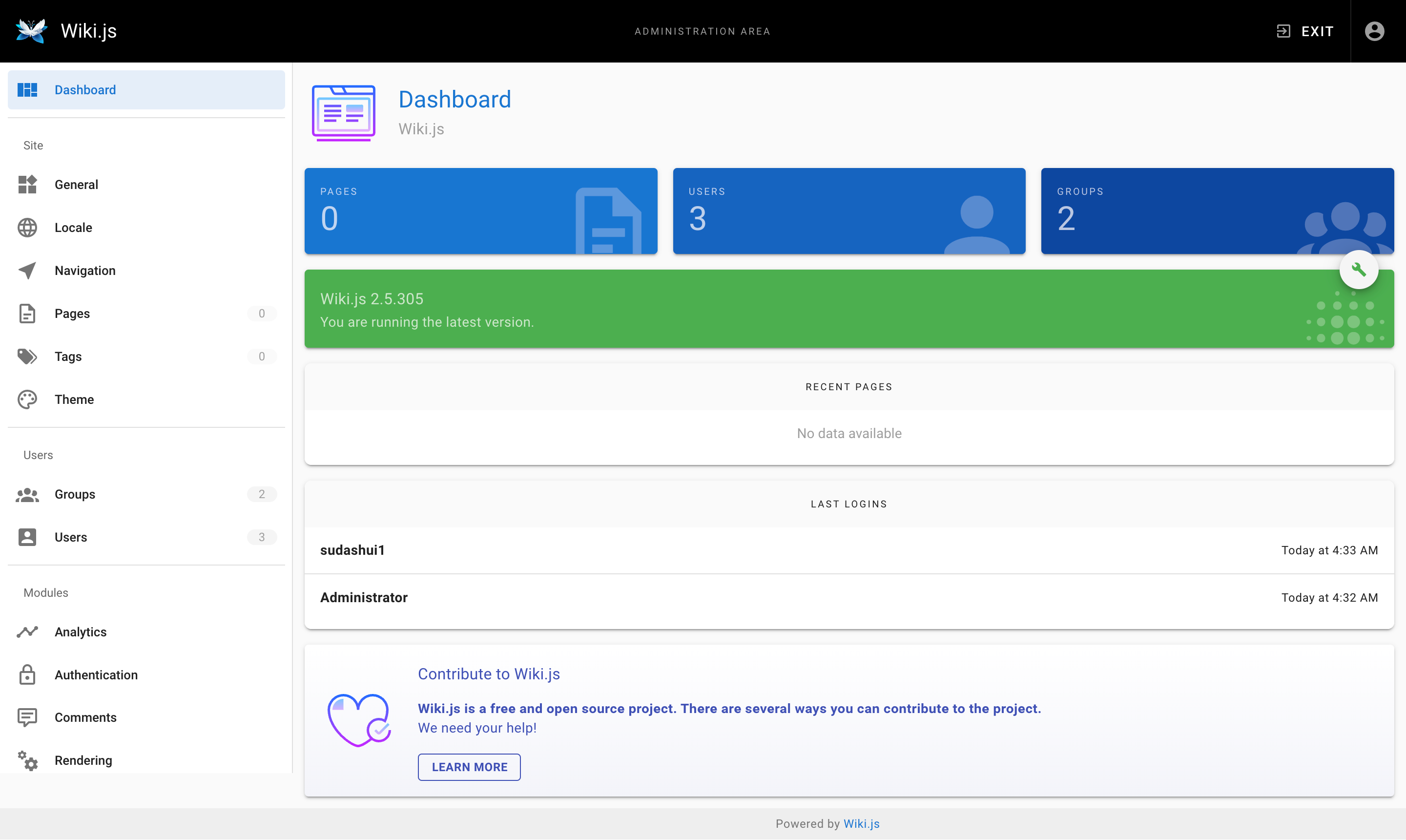 Wiki.js 是一款高度可定制且现代化的开源 Wiki 系统,专为团队知识管理和文档协作设计,具有强大的扩展性和跨平台支持能力。基于 Node.js 构建,Wiki.js 提供了简洁高效的用户界面和全面的管理功能,能够满足多种场景下的知识库需求。