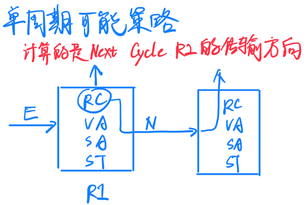 理想情况下,推测性策略可以使整个路由器的流水线缩短为单阶段,将 RC、VA、SA 和 ST 合并在一起。