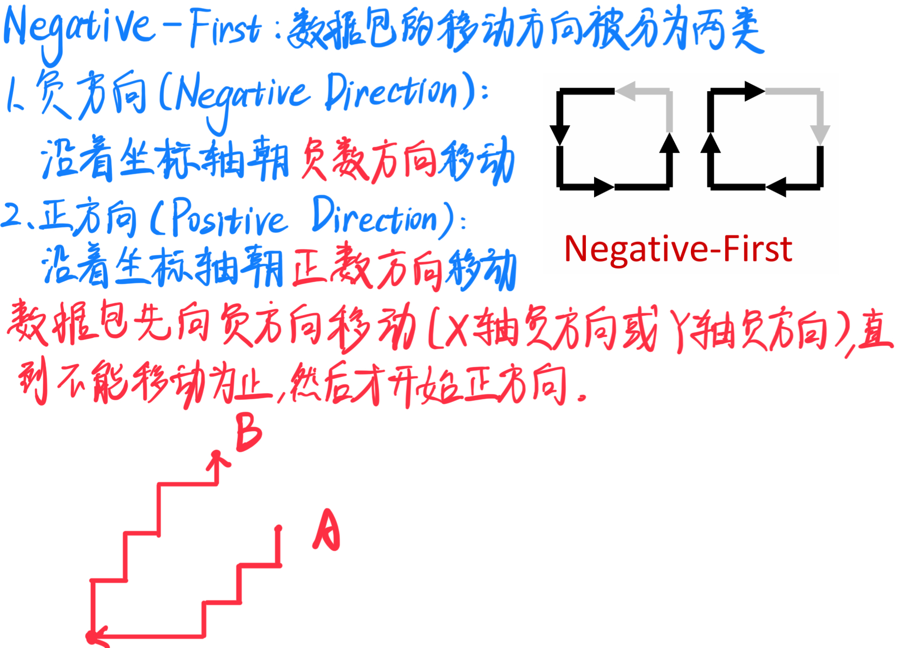 数据包必须先移动负方向(例如 X 轴负方向或 Y 轴负方向),直到不能再移动为止,然后才能开始移动正方向。