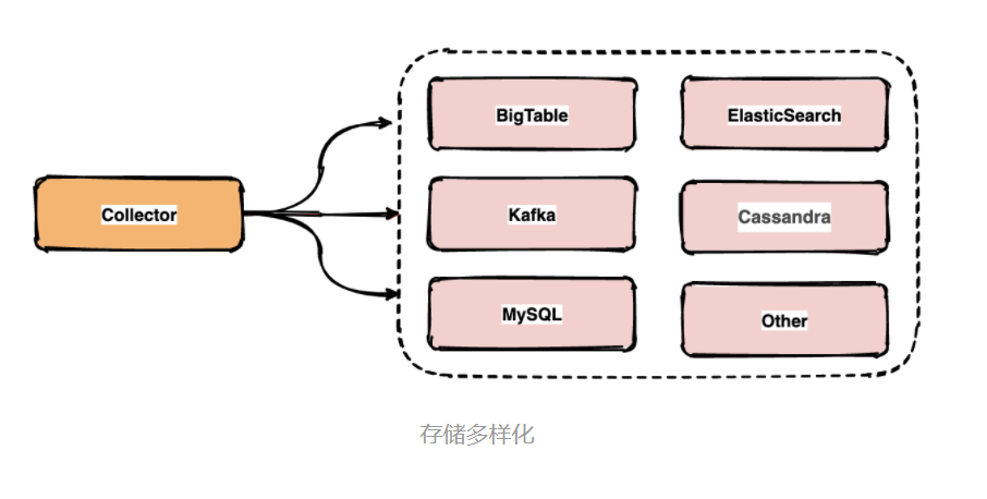 链路中的span数据经过收集和上报后会集中存储在一个地方,Dapper使用了BigTable数据仓库,常用的存储还有ElasticSearch, HBase, In-memory DB等。