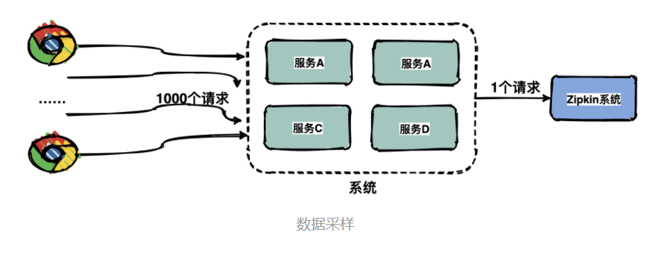 举个例子,每秒有1000个请求访问系统,如果设置采样率为1/1000,那么只会上报一个请求到存储端。
