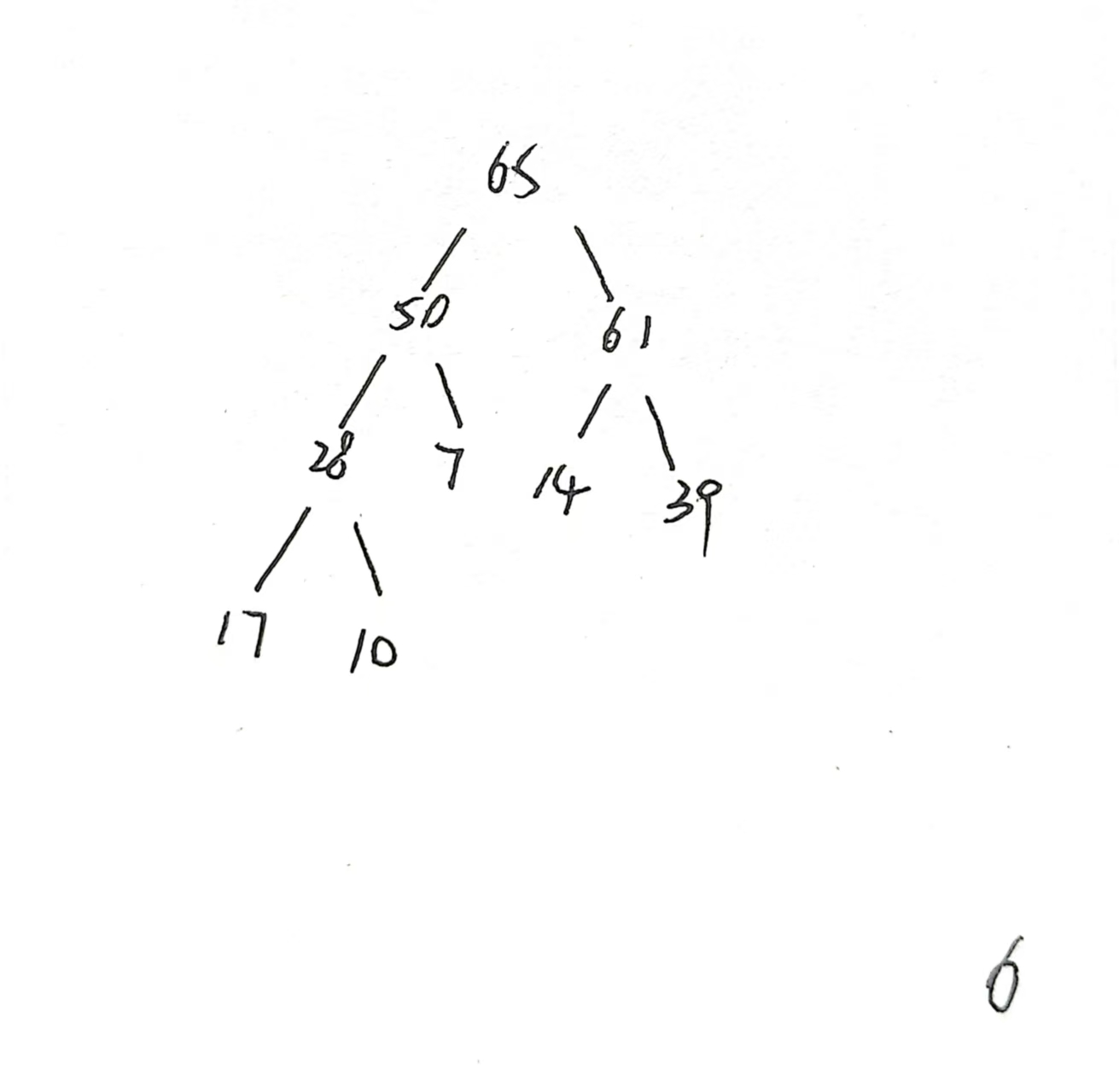 再根据自下而上的顺序进行子节点数据和双亲节点数据的交换(如果某节点的左右孩子值都比该节点大,就选取更大的一个来交换)