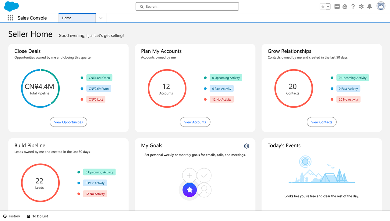 Salesforce 作为行业领先的 CRM 解决方案,有着一套成熟、标准化的客户关系管理系统,适合企业快速上线并大规模推广使用。Salesforce 的核心能力涵盖销售自动化、客户支持、市场营销和数据分析等多方面,帮助企业在各个客户生命周期阶段进行全面管理。