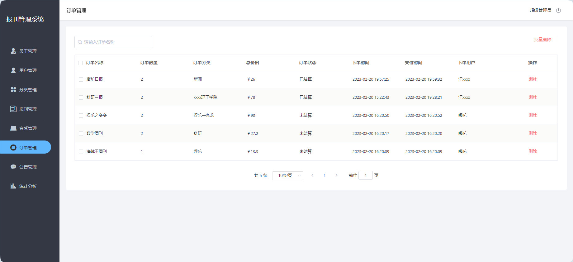 - 分类管理:对报刊和套餐进行分类管理,方便分类查询和统计。