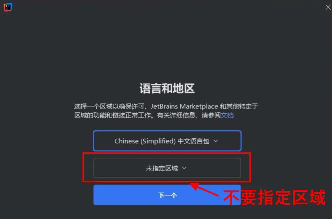 激活成功后,双击桌面的Clion快捷启动图标,来打开Clion。注意,2024.2 之后的版本,若初次安装,会提示选择所在区域,如下图所示,如果选择了 China Mainland,会在激活的时候反复跳出激活码并提示激活码无效,原因是新版本会拦截 .cn 域名,导致激活许可被吊销,所以,千万不要指定区域!!