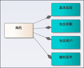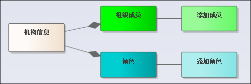 在对象UML的图例中,应该是如下所示的效果图,组织机构包含组织成员和角色的内容。