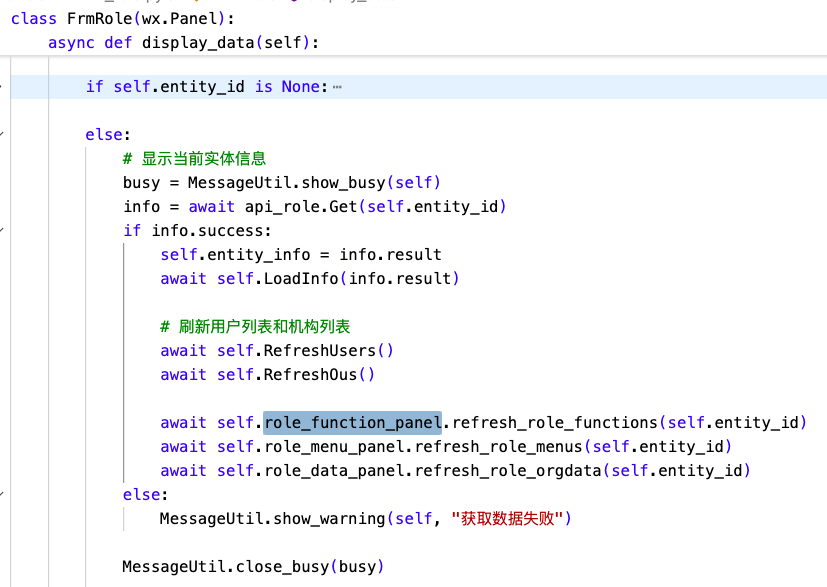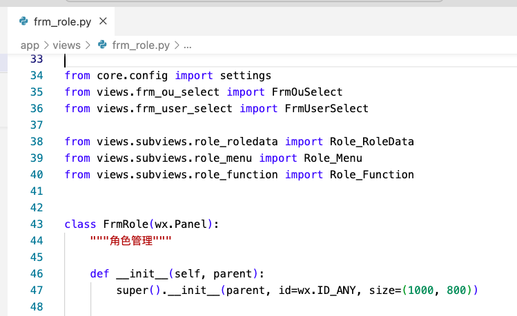 然后在主界面frm_role.py 进行汇总整合即可,如下所示,先引入相关的局部面板界面。