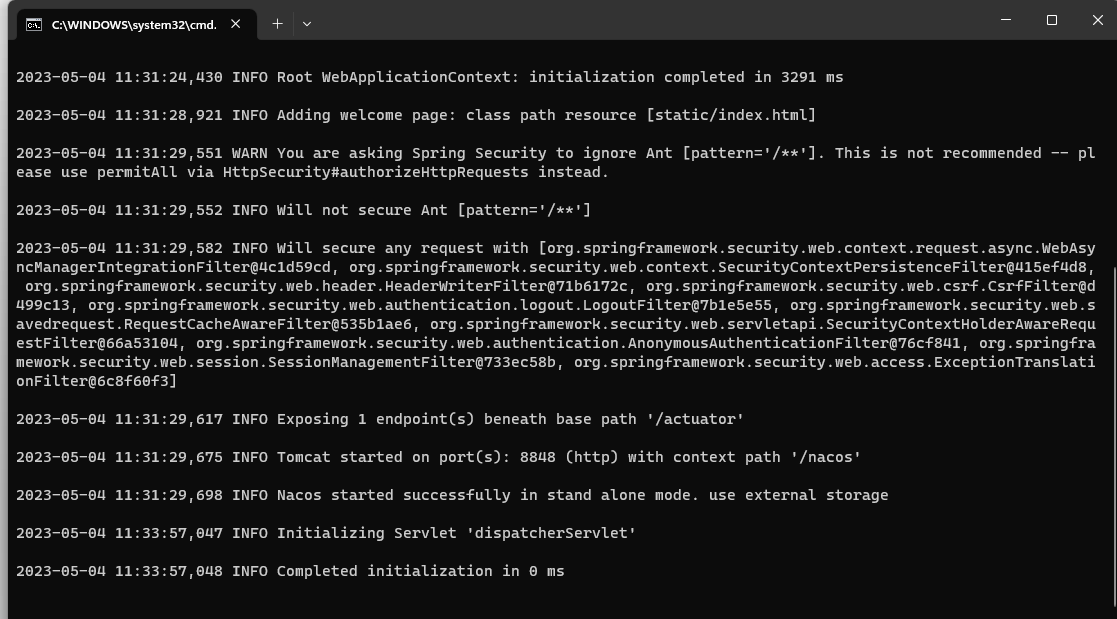 单机模式主要适合于工程师于本地搭建或于测试环境中搭建Nacos环境,主要用于开发调试及测试使用;也能够兼顾部分对稳定性和可用性要求不高的业务场景。