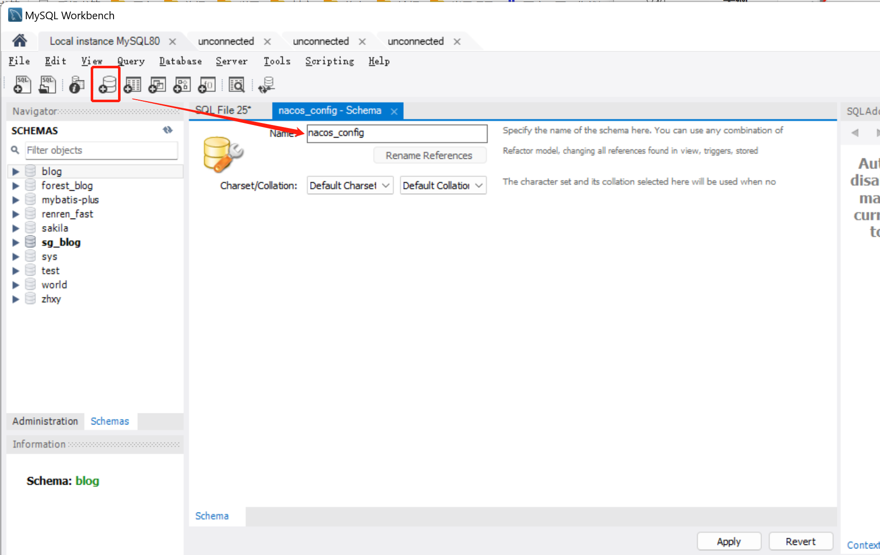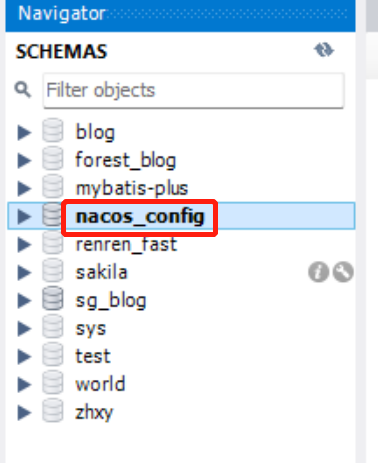 在mysql中新建数据库,库的名称nacos_config