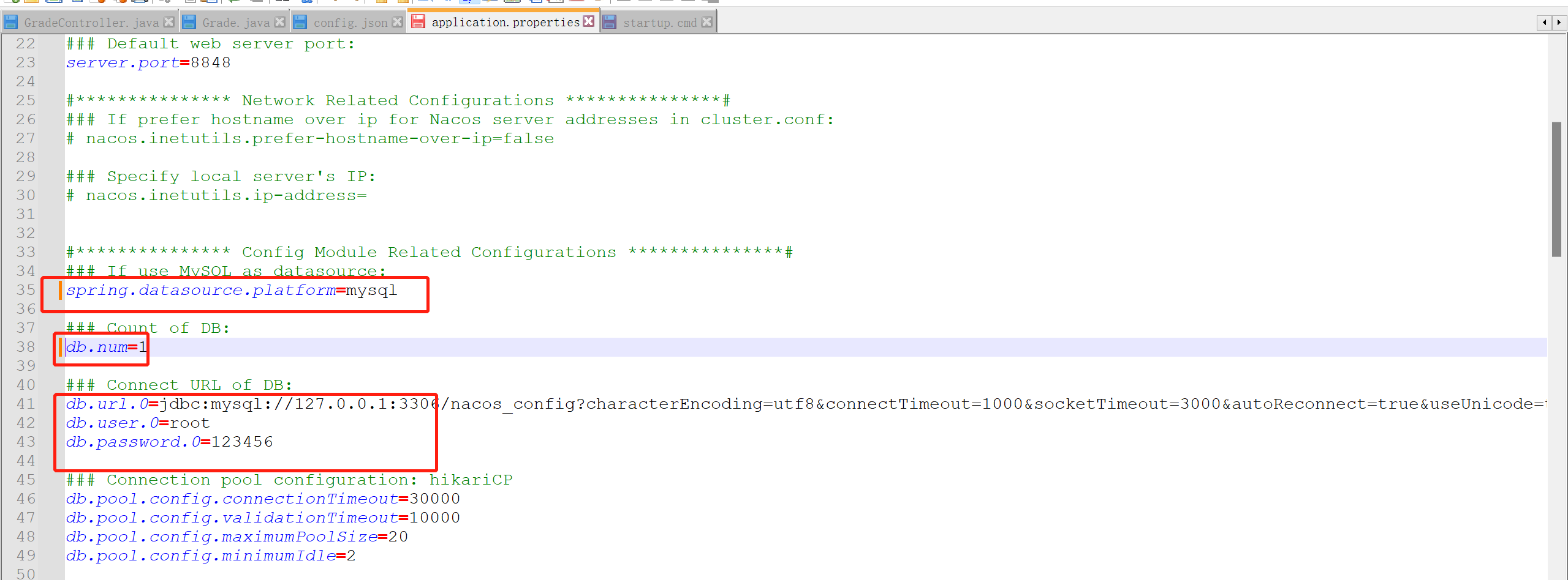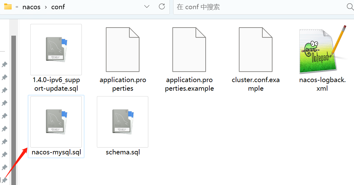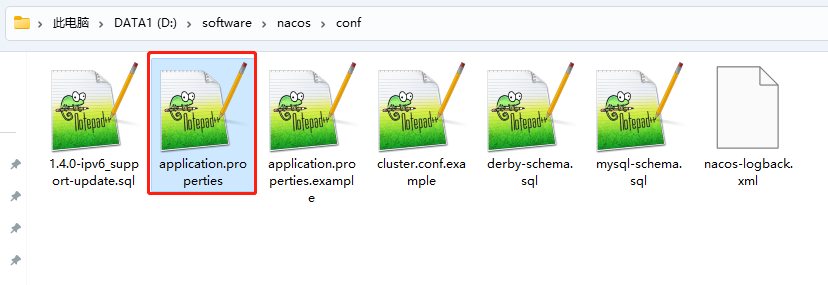 打开nacos中conf文件夹,修改application.properties文件