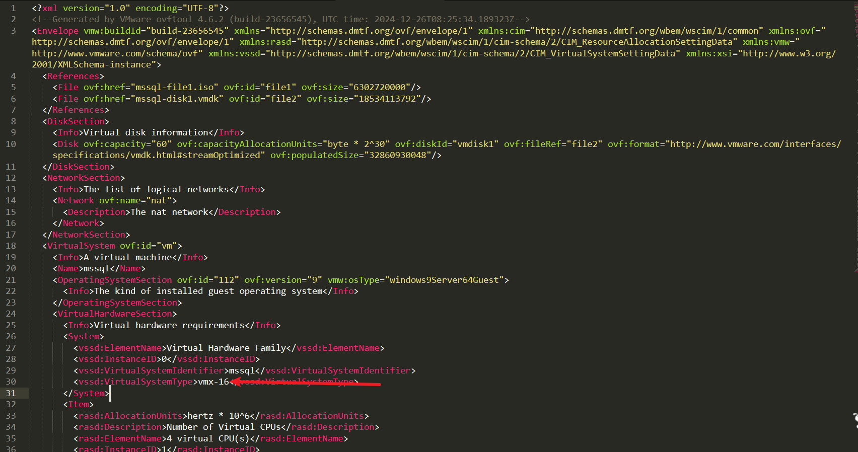 解决问题,打开 mssql.ovf 把这个位置,改成这几 vm 的版本,然后再将 mssql.mf 里面的哈希值替换一下,然后就能导入成功了