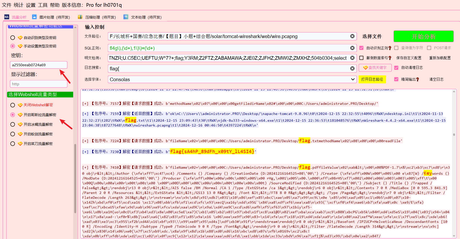 小王拿到了当时被入侵时的流量,其中一个IP有访问webshell的流量,已提取部分放在了两个pcapng中了。请帮他解密该流量。