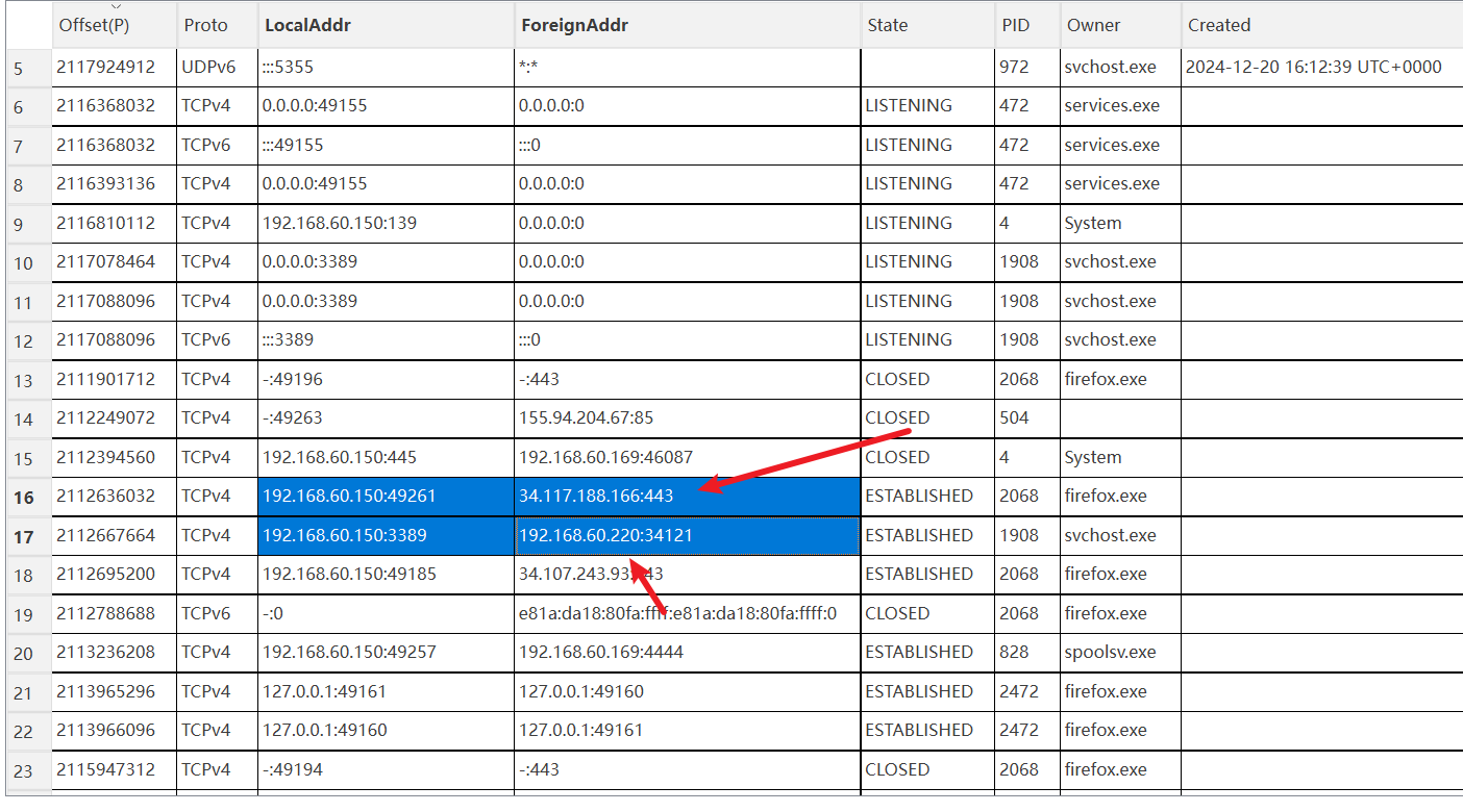 直接查看网络扫描使用,netscan 插件,看到 443 端口连接的地址