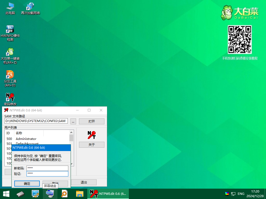 接着使用大白菜修改密码 Vmware虚拟机中windows系统用户名密码忘记处理方法 – 简书,这里有些几个步骤不一样,我们设置好大白菜的镜像后,开机后重启,一直按 F2 进入 BIOS界面,后面就一样了