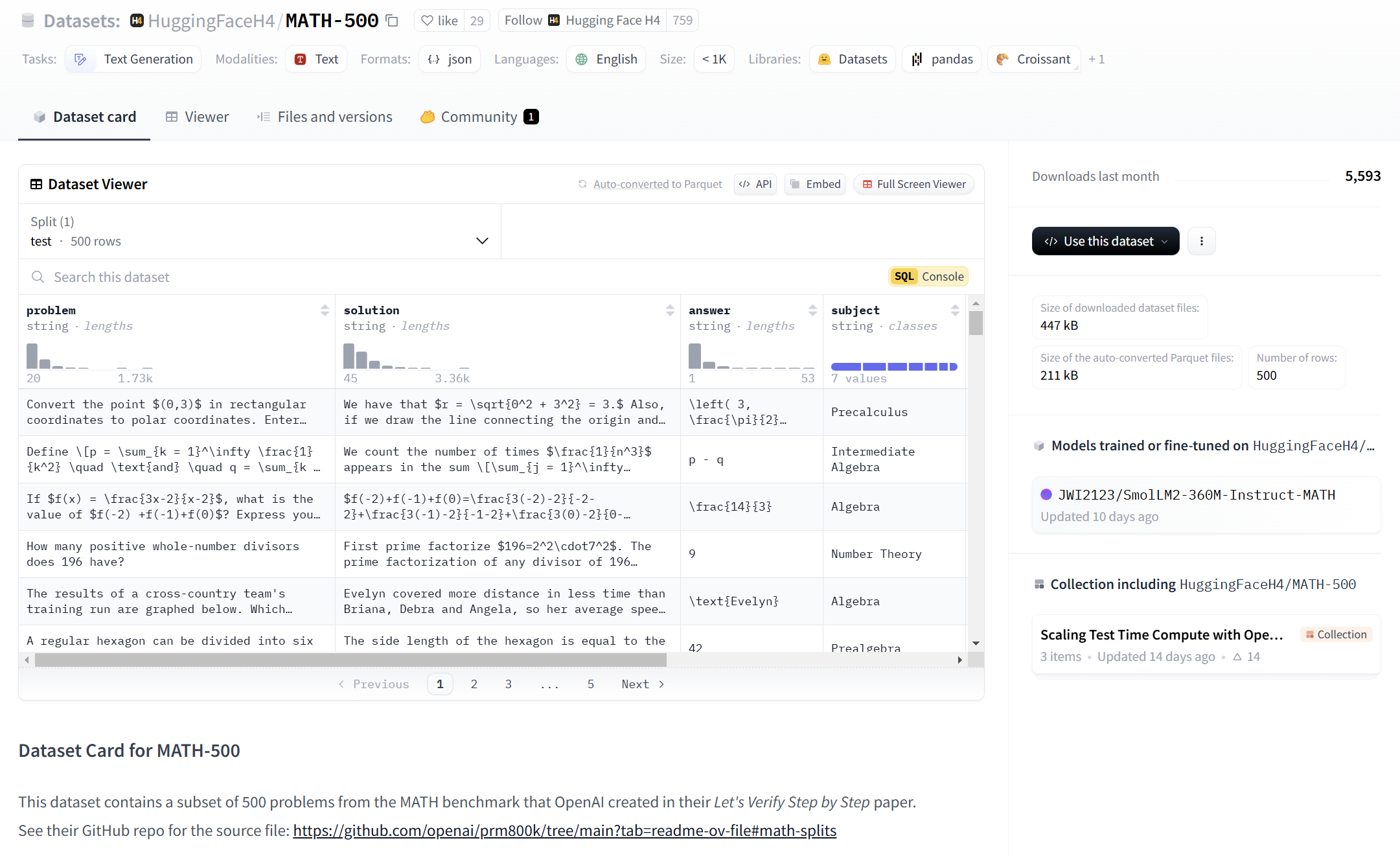 数据集地址: https://hf.co/datasets/HuggingFaceH4/MATH-500