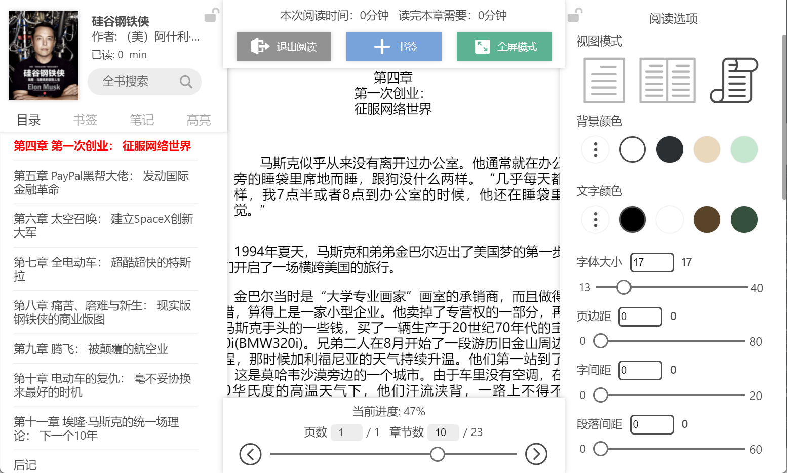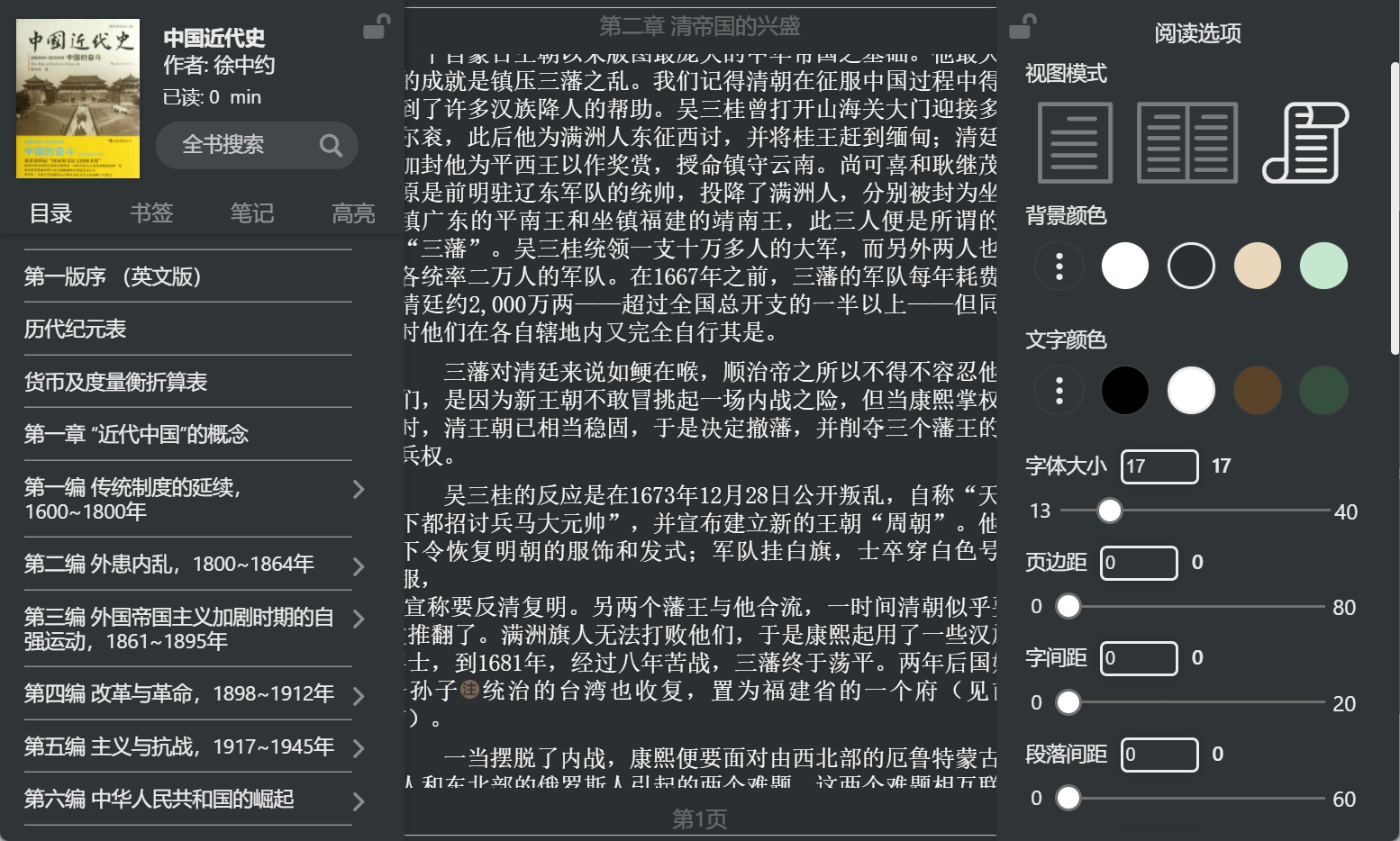 - 支持目录、书签、笔记、高亮、书架、标签