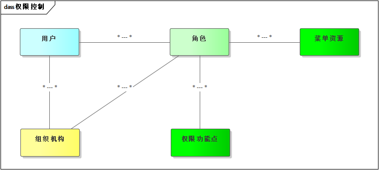 权限管理系统主要的功能包括有:用户管理、组织机构管理、功能管理、角色管理和权限分配管理、菜单管理、系统类型管理、登录日志管理、操作日志管理、系统黑白名单管理等功能模块。对于每新增一个系统,我们只需要在权限管理系统中增加一个系统类型定义,以及相关的功能、菜单数据即可,非常方便管理。下图是一个简化的权限管理系统中涉及到角色相关资源的信息。