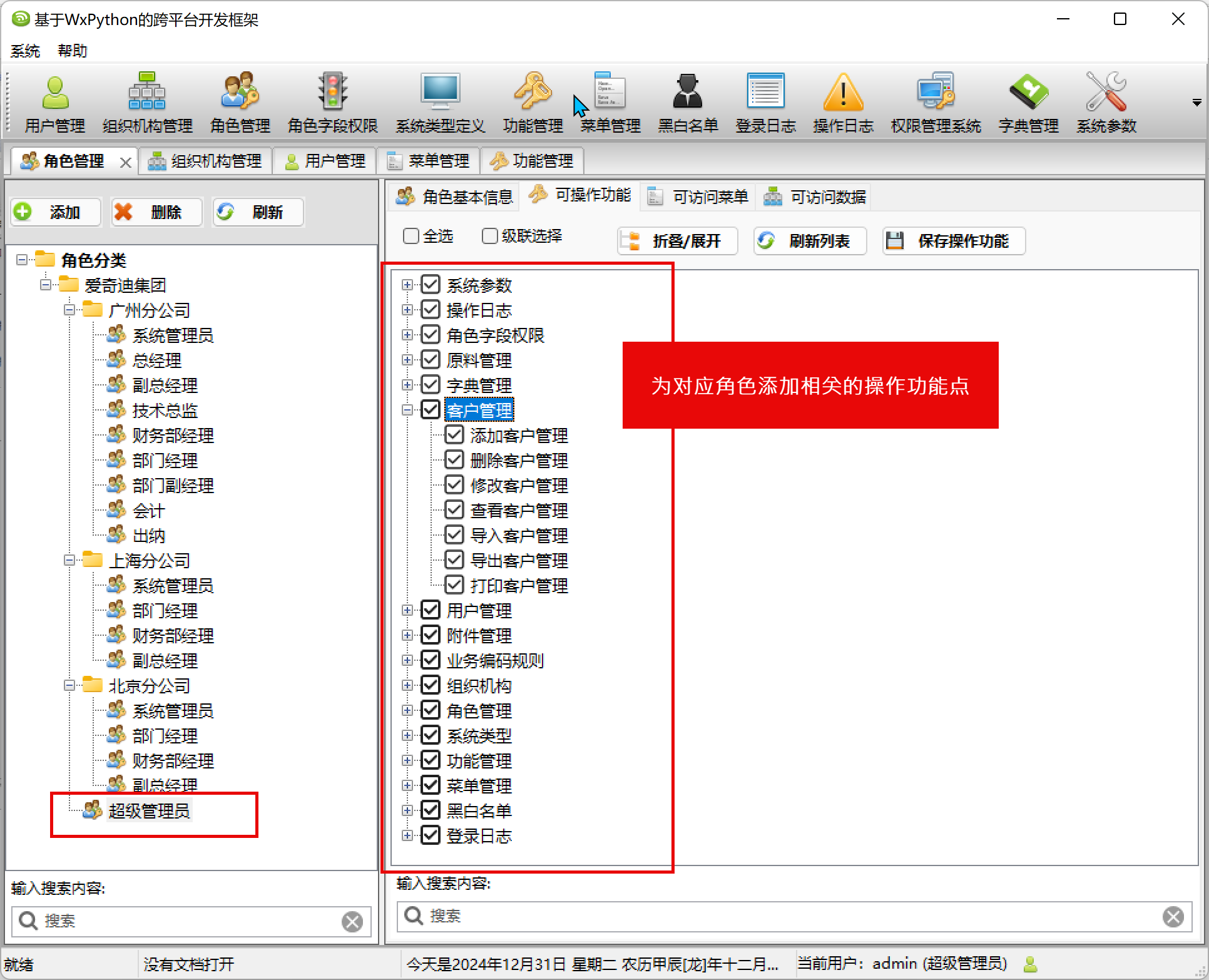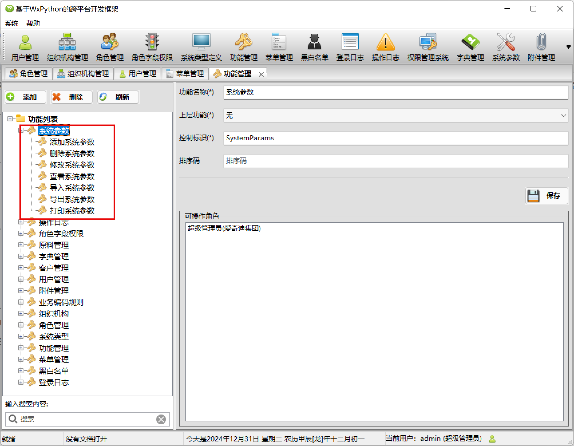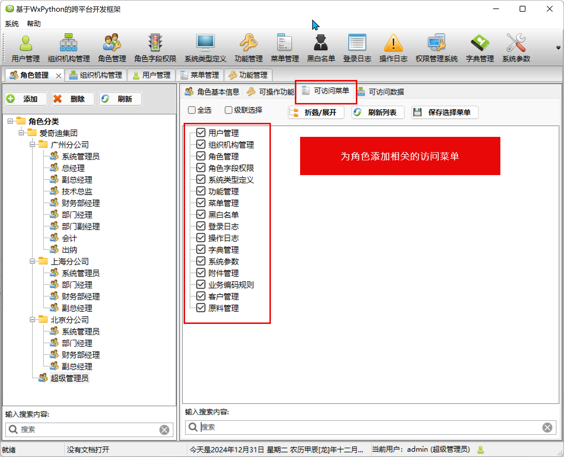 在一个业务管理系统中,如果我们需要实现权限控制功能,我们需要定义好对应的权限功能点,然后在前端界面中对界面元素的可用性和功能点进行绑定,这样就可以在后台动态分配权限进行动态控制了,一般来说,权限功能点是针对角色进行控制的,也就是简称RBAC(Role Based Access Control)。对于登录系统后的用户,对用户的菜单(工具栏)、界面操作按钮的权限进行动态化的绑定和统一处理的操作过程,这样对于我们界面,只需要约定一些规则即可实现比较弹性化的操作,非常方便。本篇随笔介绍WxPython跨平台开发框架之动态菜单的管理和功能权限的控制。