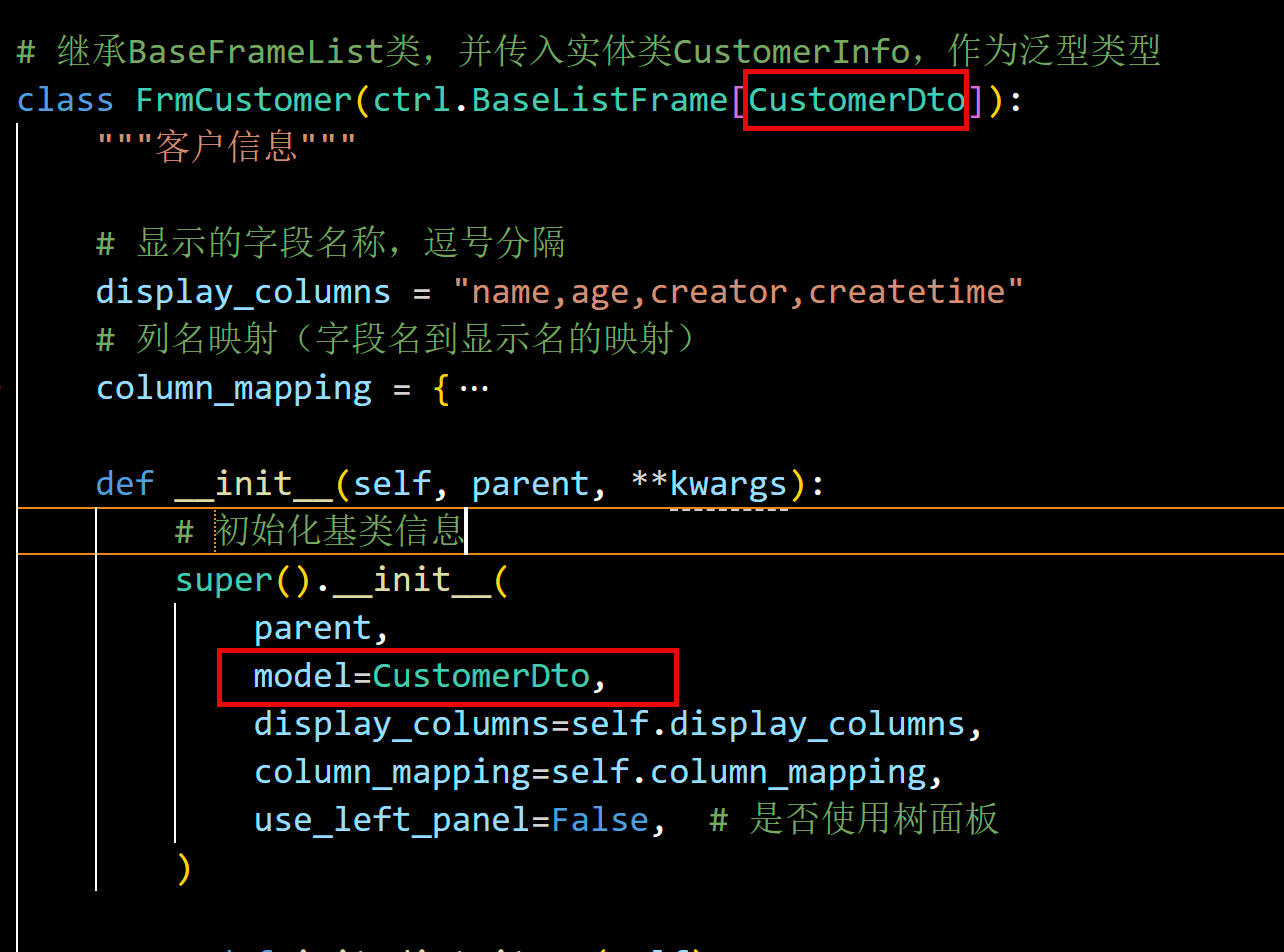 如对于客户信息的列表窗体,我们的视图类如下所示((通过代码生成工具Database2Sharp生成即可,之前随笔《在自家的代码生成工具中,增加对跨平台WxPython项目的前端代码生成,简直方便的不得了》介绍过)。