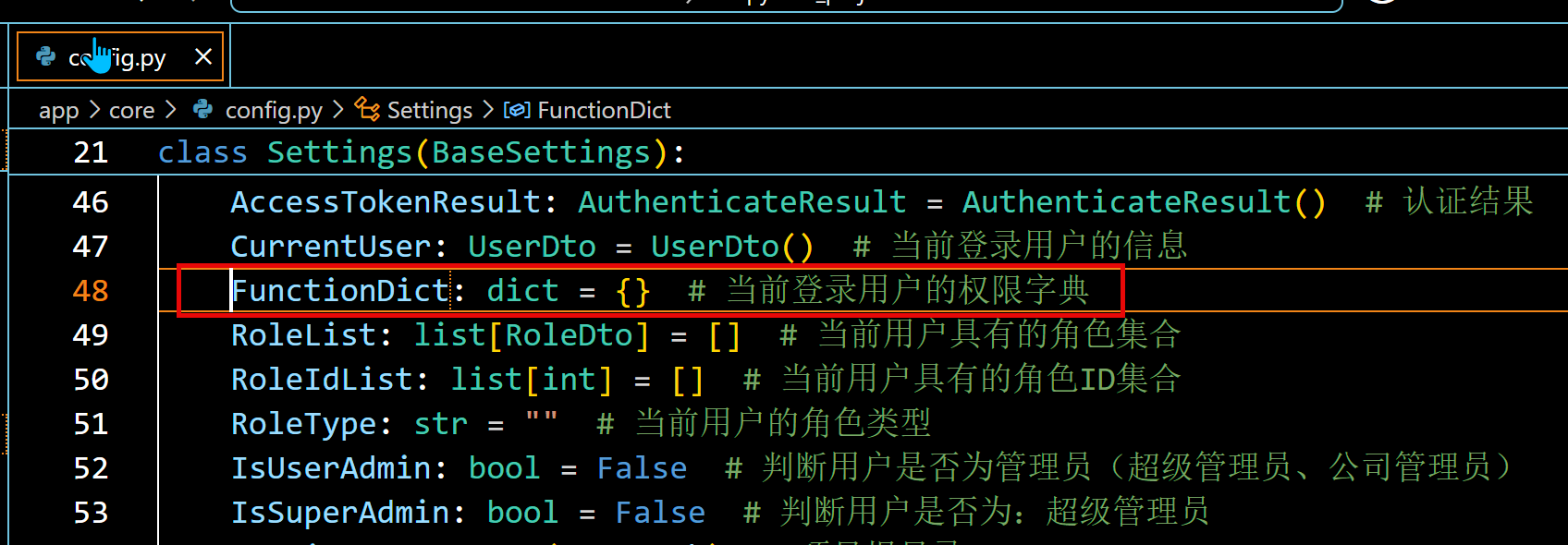 首先我们在当前终端的全局设置对象里面定义好拥有的功能点对象,如下代码所示。