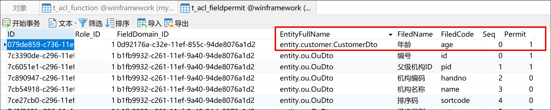 根据实体类全称和字段名称,以及对应该用户的角色ID,我们就能唯一确定该字段的权限了。