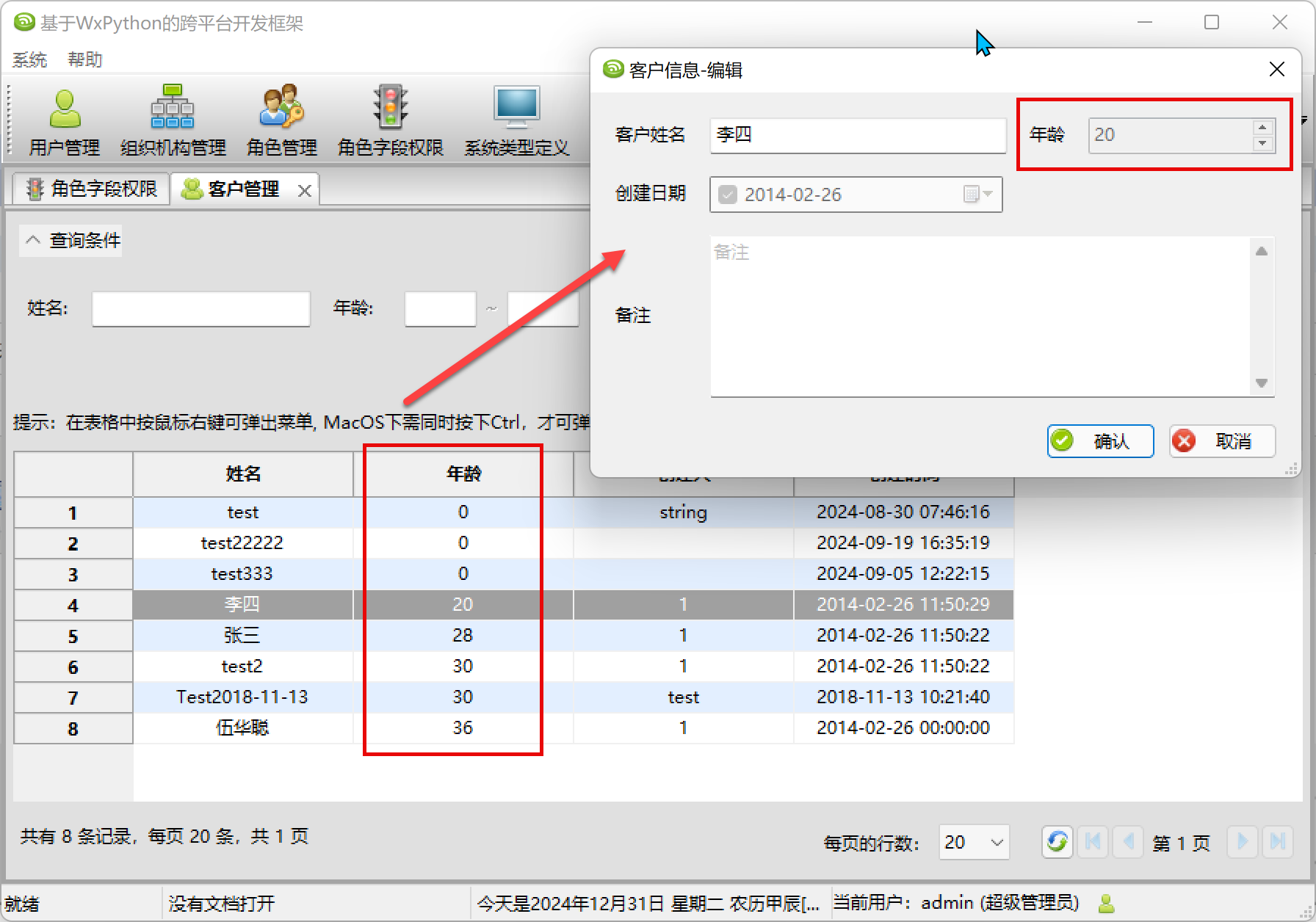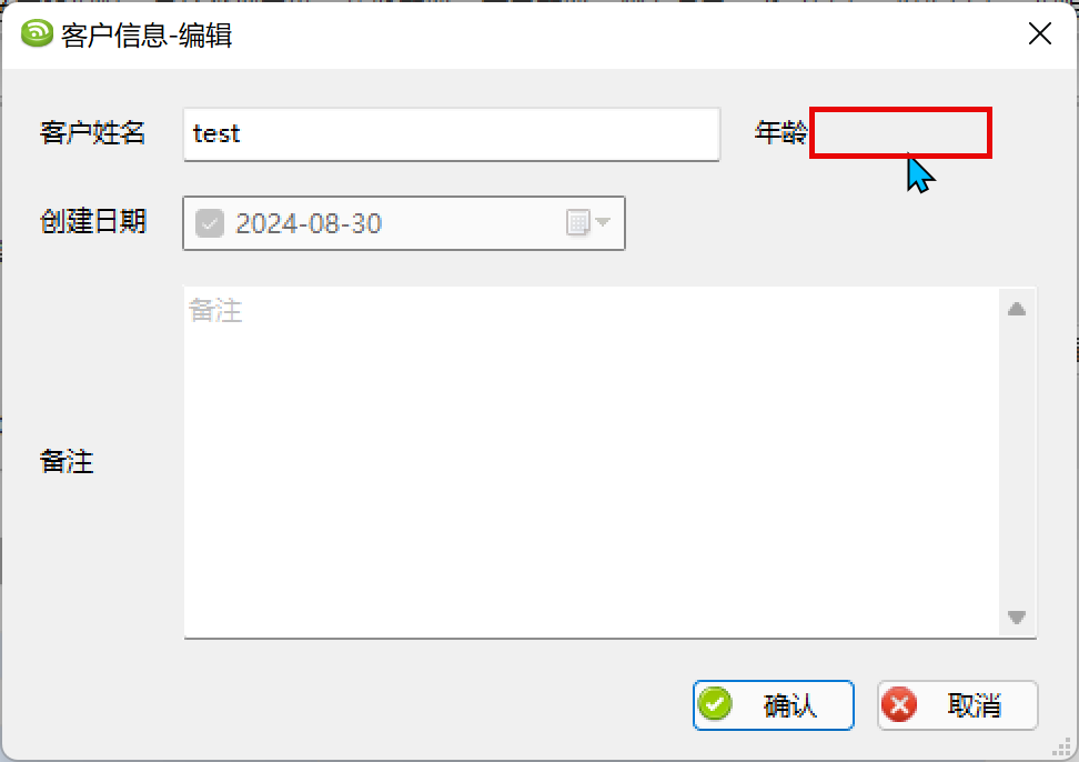那么用户对应客户信息模块的年龄字段可以看到,但是不能编辑。