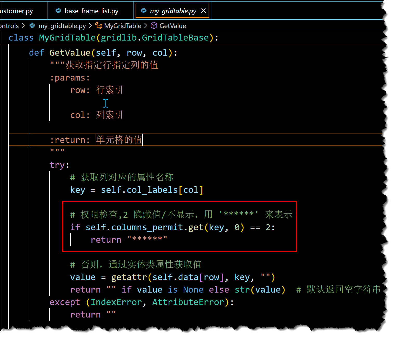 如果在开发界面的时候,把列表的展示统一放在wx.Grid列表控件进行展示,不再独立设计展示窗体,那么上面列表控制就已经达到了字段权限的控制目的了:可见或不可见、可编辑或只读等处理。
