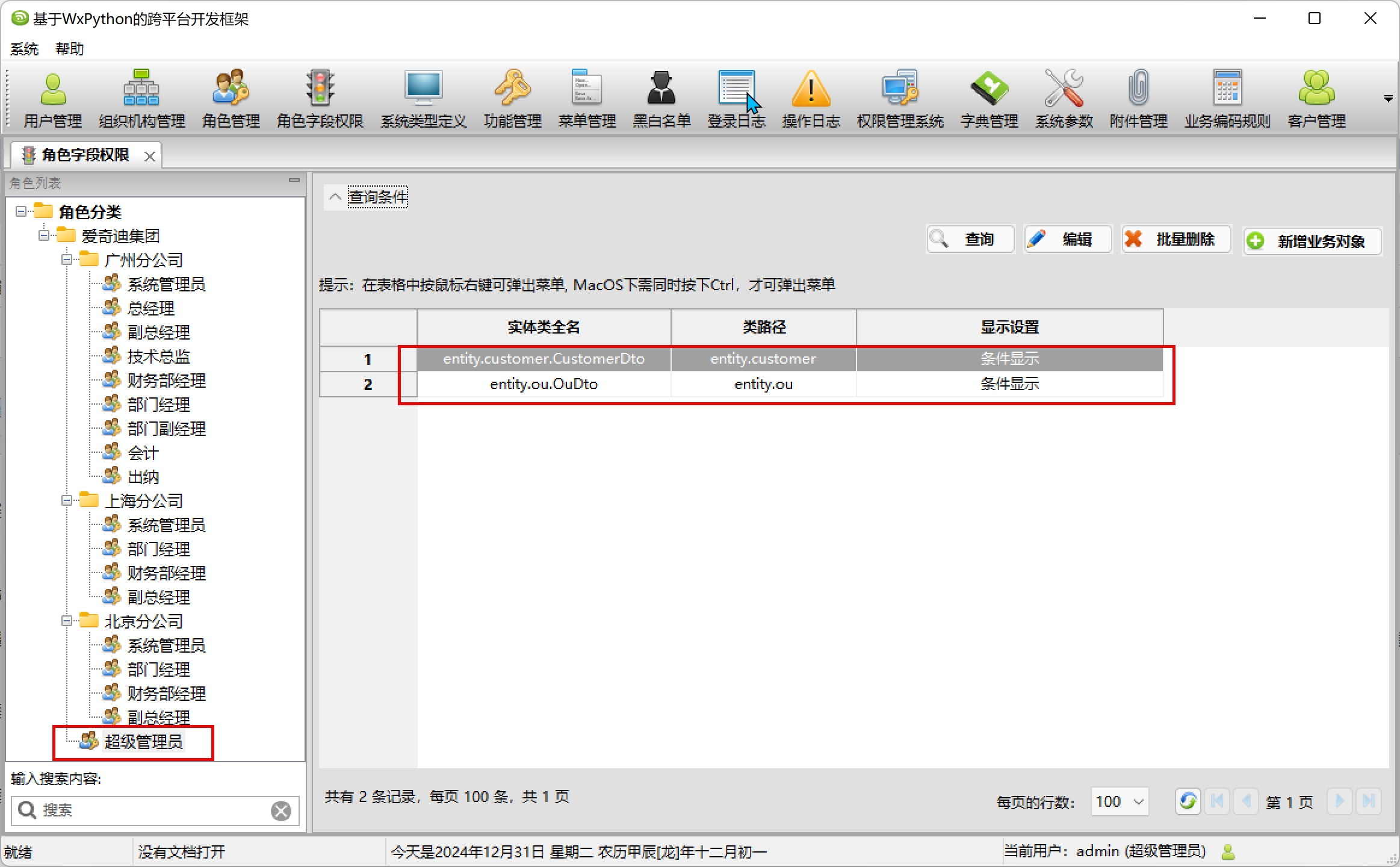 在我的很多Winform开发项目中,统一采用了权限管理模块来进行各种权限的控制,包括常规的功能权限(工具栏、按钮、菜单权限),另外还可以进行字段级别的字段权限控制,字段权限是我们在一些对权限要求比较严格的系统里面涉及到的,可以对部分用户隐藏一些敏感的信息,或者禁止不够权限的用户编辑它。本篇随笔介绍基于这一理念,实现在WxPython跨平台开发框架中的模块字段权限的管理。