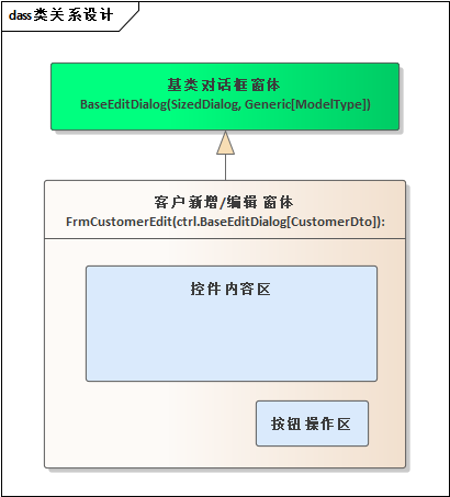 详细的基类设计如下所示,如对于客户信息的新增、编辑对话框,关系图如下所示。