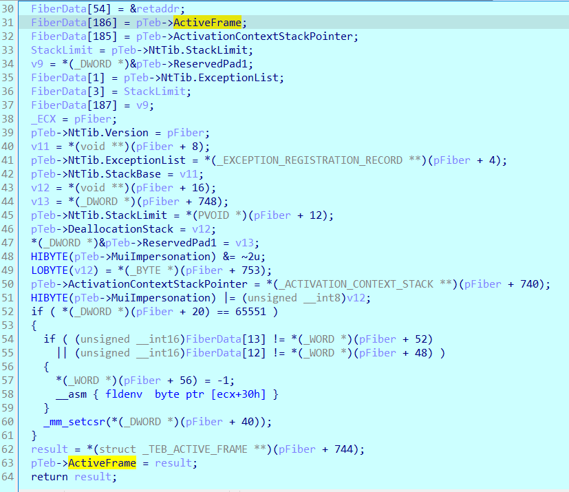 msFiber跟higan-emu都只提供对称协程。msFiber跟它的线程teb是有某些关联的,它会在SwitchToFiber中设置许多TEB的项。