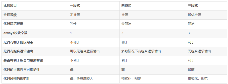 - 三段式:现态、次态与输出逻辑分别在一个always块中