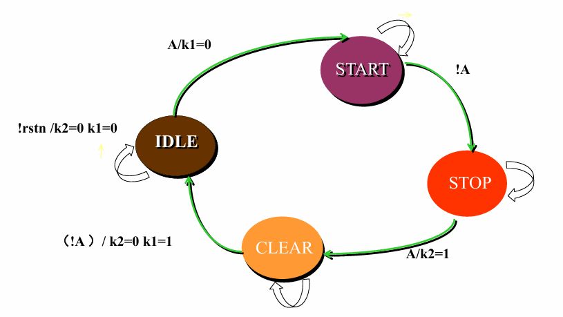 状态机是由纯硬件电路构成,不存在CPU运行软件过程中许多固有的缺陷;