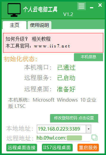 接下来介绍一个更便捷的方式,“个人云电脑工具”是专为云存储搭建而精心打造的一款便利工具,可以帮助您实现从手机,从家里的电脑控制办公室或任意想远程控制电脑的操作。只需成功安装,即可直接使用。从初次邂逅它的界面开始,便能感受到设计者的贴心考量,布局简洁直观,图标标识清晰明确,毫无上手门槛,即便是技术小白也能快速理清操作脉络。