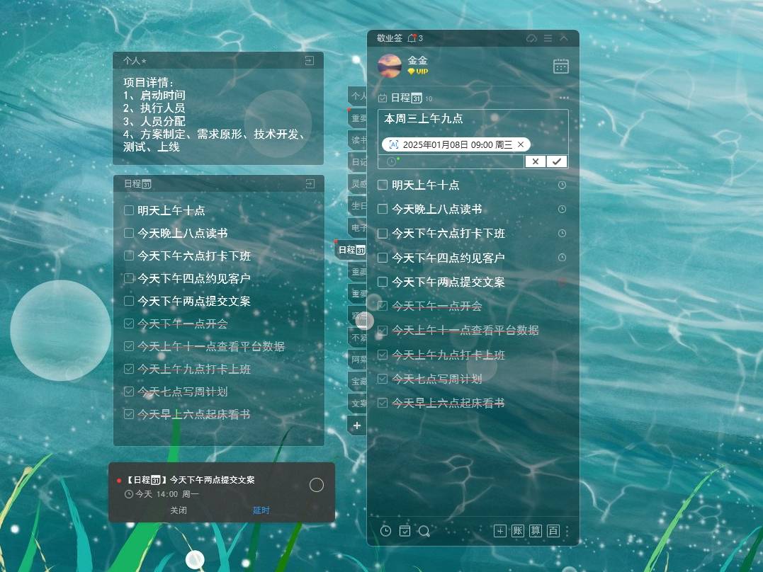 此外,每条便签、每个待办分类都支持独立云游到桌面上显示。