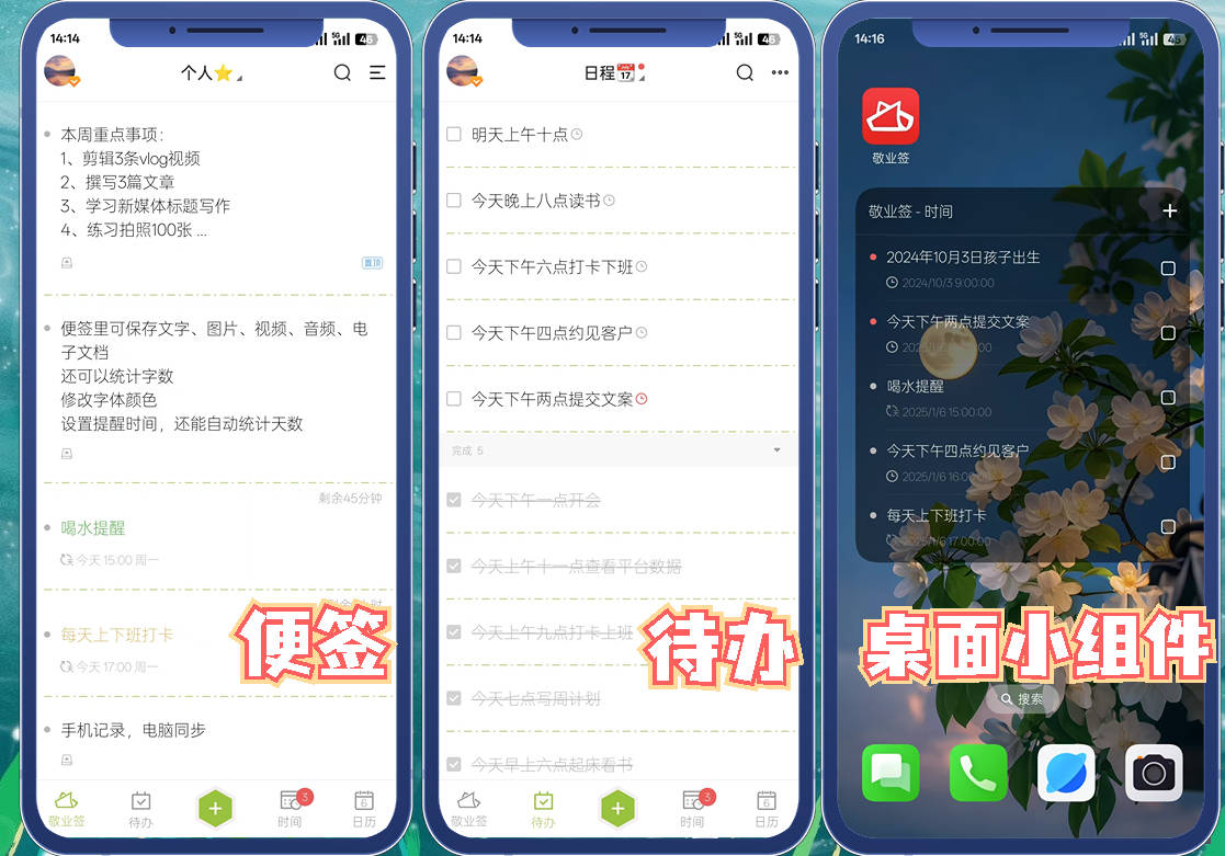 在外出或下班后,我们更多的是使用手机,而敬业签不仅支持在Win和Mac电脑上使用,还可以在安卓、苹果、原生鸿蒙手机端使用,并且内容是多端实时同步的,方便多设备无缝衔接使用,轻松提高办事效率!