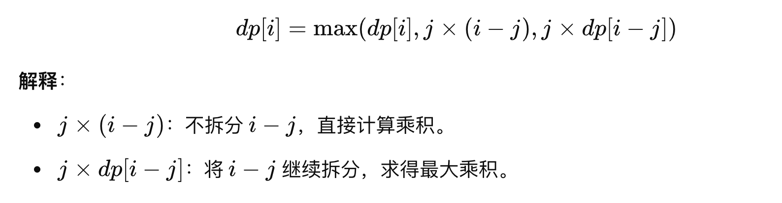 // dp[j]是拆分j后的最大乘积,i-j是剩下的部分