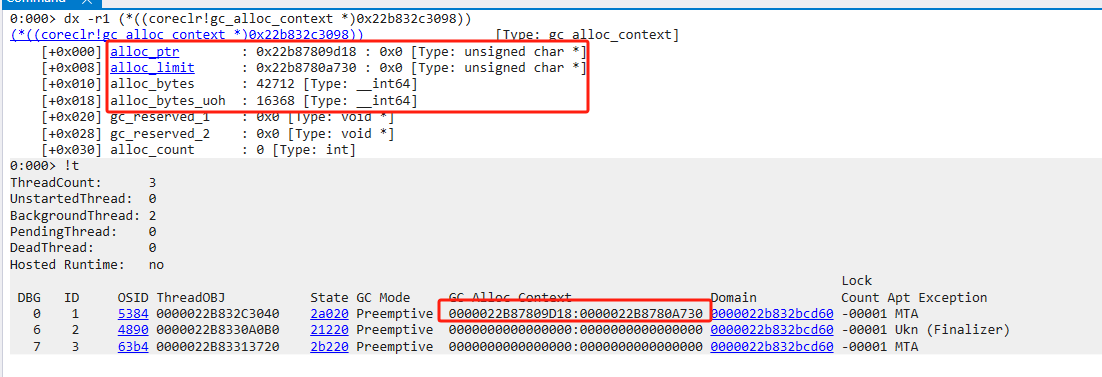 00007ffb`93b81968 e8d3ceb65f call coreclr!JIT_TrialAllocSFastMP_InlineGetThread (00007ffb`f36ee840)