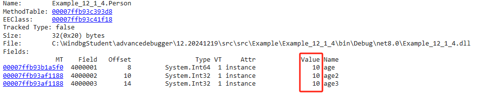 00007ffb`93b8195e 48b9d893c393fb7f0000 mov rcx,7FFB93C393D8h (MT: Example_12_1_4.Person)