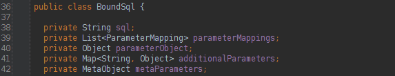 BoundSql类,封装mybatis最终产生sql的类,包括sql语句,参数,参数源数据等参数: