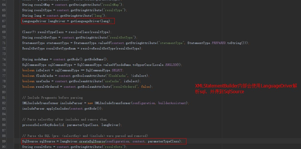 简单分析下XMLLanguageDriver(处理xml中的sql,RawLanguageDriver处理静态sql):XMLLanguageDriver内部会使用XMLScriptBuilder解析xml中的sql部分。