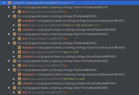 parseDynamicTags方法的返回值是一个List,也就是一个Sql节点集合。SqlNode本文一开始已经介绍,分析完解析过程之后会说一下各个SqlNode类型的作用。