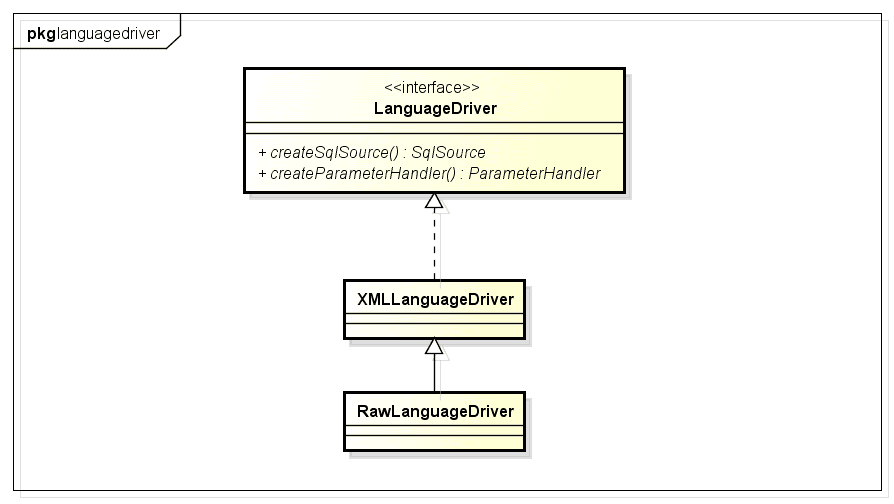 LanguageDriver接口及其实现类(属性,方法省略了,大家有兴趣的自己看),该接口主要的作用就是构造sql: