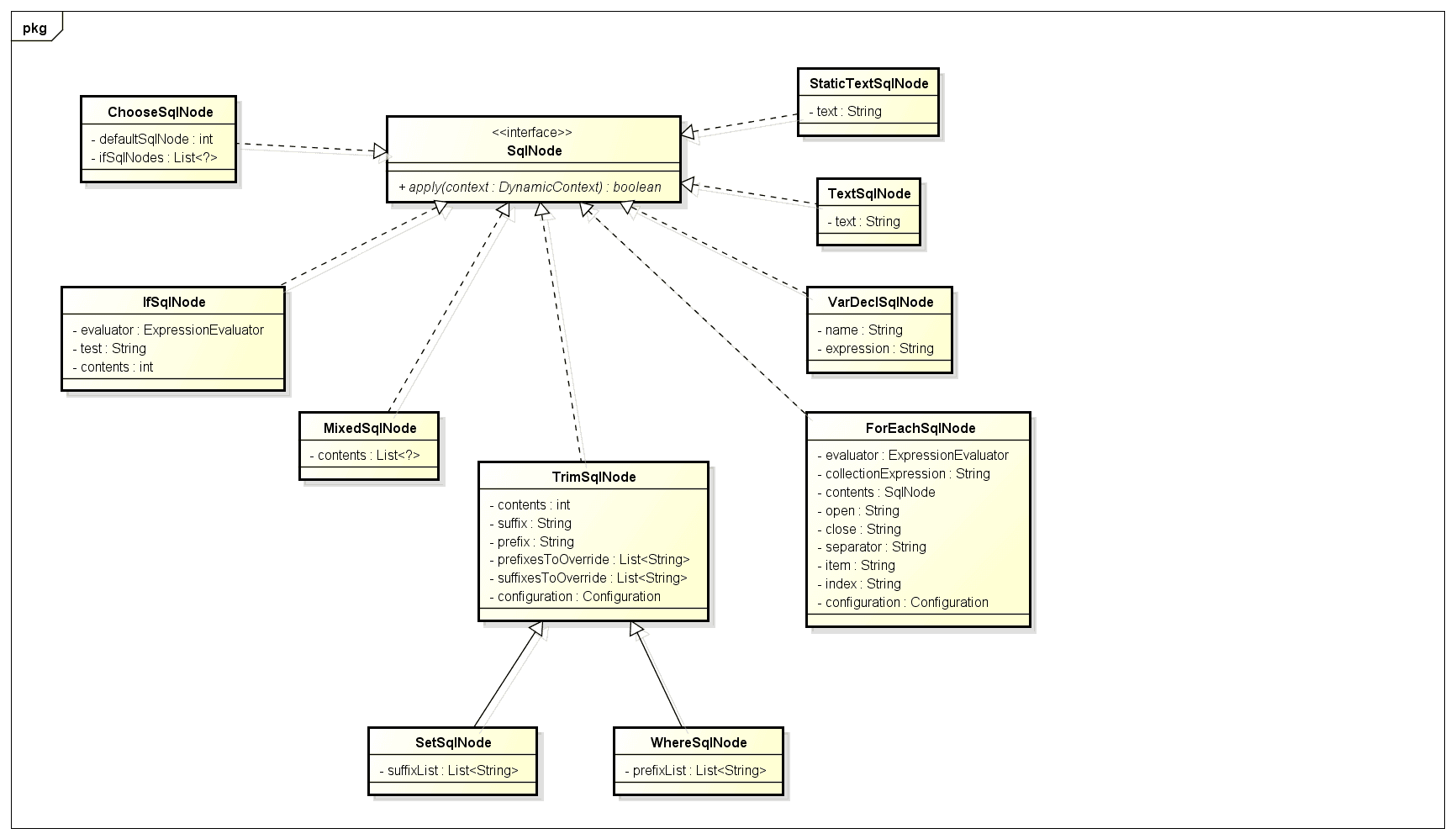 SqlNode接口,简单理解就是xml中的每个标签,比如上述sql的update,trim,if标签: