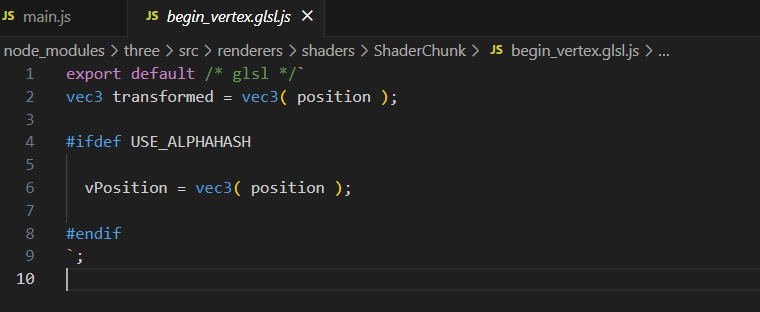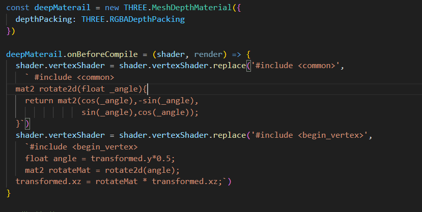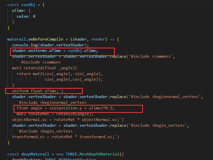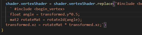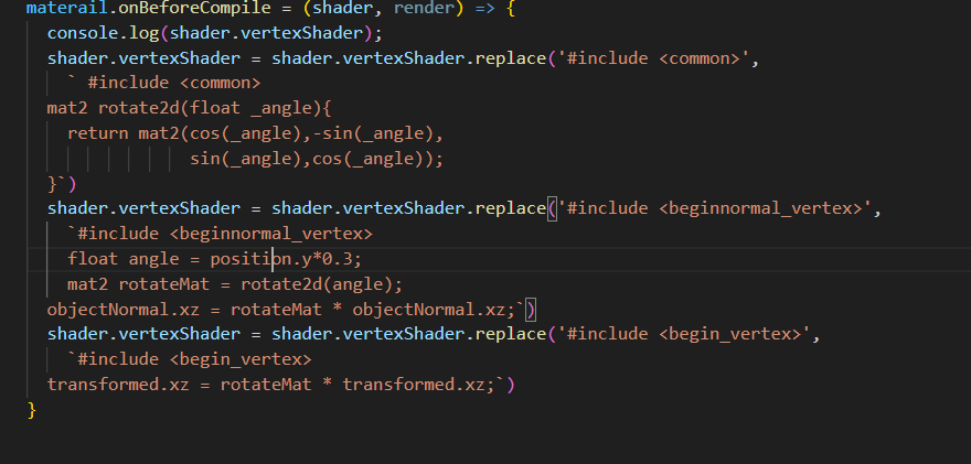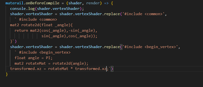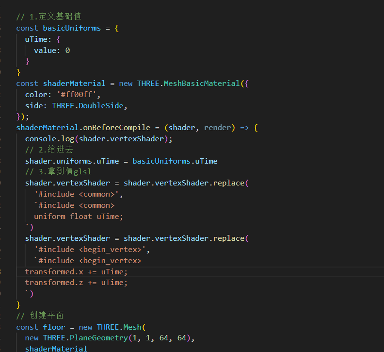 其实three里面所有的材质不管是基础还是点等等之类最终都会编译为shader然后执行,所以如果拿到一个材质我想对某个地方小改一下,那么也是可以用shader来进行修改的