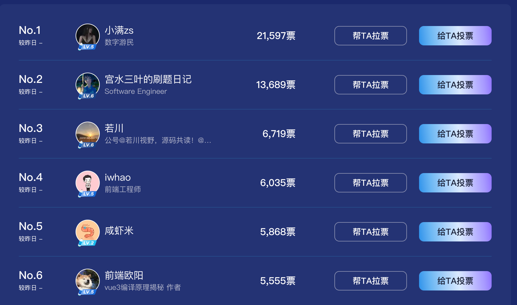 原本今年不打算参加2024年度人气创作者打榜的,因为看见有2700+作者报名,怎么轮也轮不到我。。。